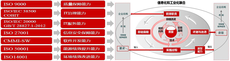 接點秉承二十年的管理體系咨詢經驗,在建設兩化融合管理體系時,可同時通過流程優化與組織重構整合ISO9001、ISO140001等多種管理體系,使企業體系流程與管理流程一致、有效,充分發揮組織效率,真正杜絕“內外兩張皮”現象。