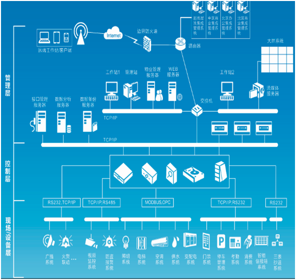 智能建筑管理系統IBMS是在BAS的基礎上更進一步的與通信網絡系統、信息網絡系統實現更高一層的建筑集成解決方案,將建筑設施內重要的系統,如暖通空調(HVAC)、能源管理、照明、視頻監控、安全防范、消防、生命安全和其它系統,集成到統一的平臺,使相關人員可以在任何地點使用標準的 Web 瀏覽器來監測、管理和控制各種設施、能源、以及安防系統等。接點IBMS具備高彈性架構,采用開放性平臺,擴展型強;自主開發各種主流品牌和協議的驅動;通過JOINTT智能網關分散部署;可替代部分簡單子系統的控制;適用于不同規模的單棟或多棟建筑。